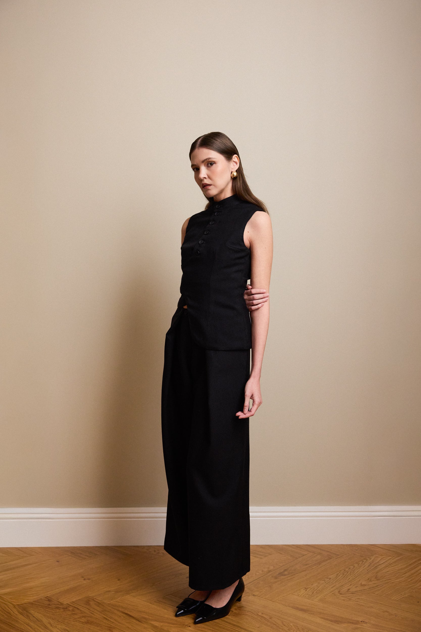 Wear as a set with the Wool Silk & Cashmere vest for an office look or a more formal style.